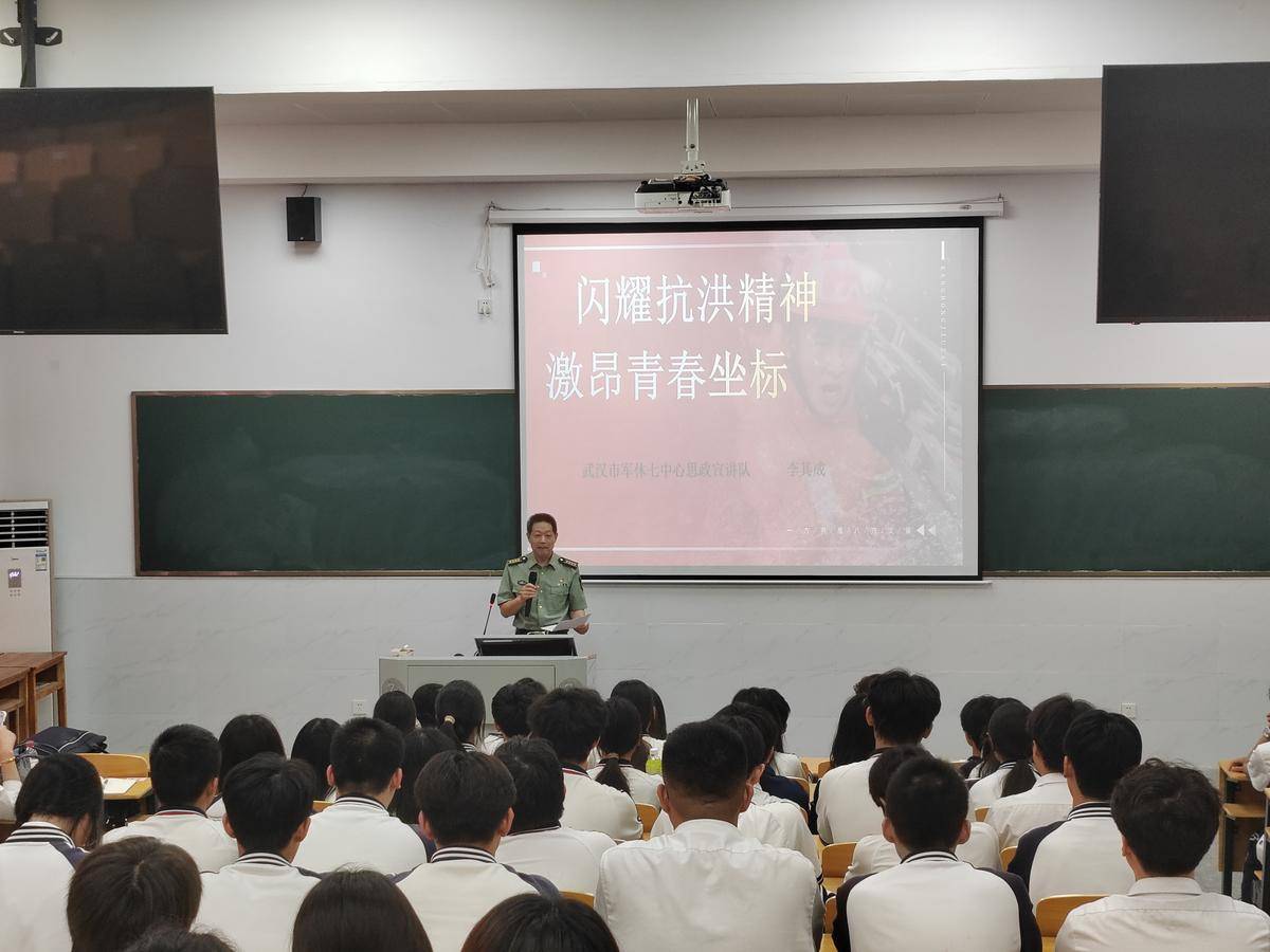 湖北日报客户端讯(记者 楚舒 通讯员 谢茜妮)6月19日下午,武汉市退役军人事务局军休七中心思政宣讲队在武汉市建设学校开展抗洪精神宣讲活动。思政宣讲队成员李其成,曾参与1981年湖北抗洪,以《闪耀抗洪精神 激昂青春坐标》为题,带来一场生动的精神传承课。