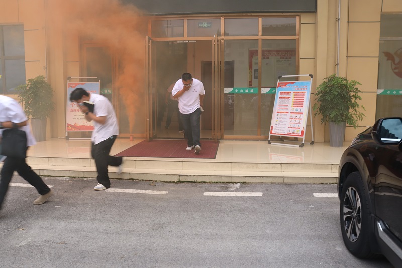 随着急促的哨声响起,员工们在企业管理人员和消防宣传员的指挥下,迅速用湿毛巾捂住口鼻,弯腰低姿有序地撤离到安全地带。整个演练过程紧张有序,达到了预期的效果。
