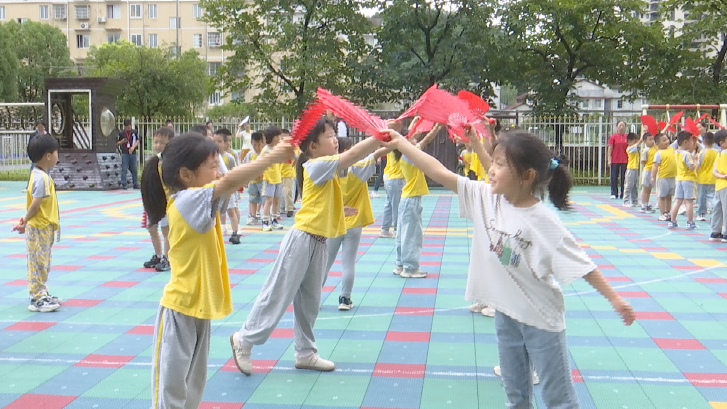 走进第四幼儿园,一堂基于园所特色的医育结合课程正在音体教室里开展,老师通过有趣的图文和历史典故,引导幼儿认识中草药,探索中医保健知识。在校园操场上,大班孩子们手执鲜红大扇,翻飞开合之间仿佛金红的花海绽放于天空下。在体育课堂上,孩子们在玩闹中掌握奔跑控制与简单平衡;在探索中灵活钻爬,加强肢体协调;在参与综合运动中理解团队协作。