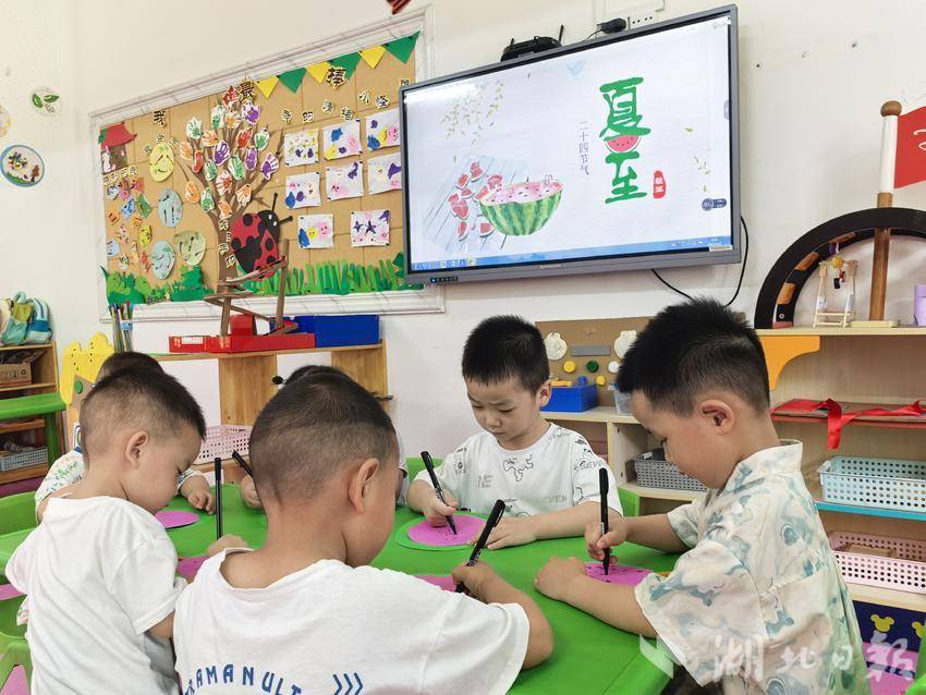湖北日报客户端讯(通讯员孙建华、王丹妮、刘婷薇)蝉鸣阵阵,暑气渐浓。6月18日,樊城区第四幼儿园以夏至为契机,开展主题教育活动,带领孩子们循着节气脉络,探寻传统文化的奥秘,在动手实践中感受千年农耕智慧的魅力。