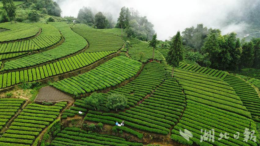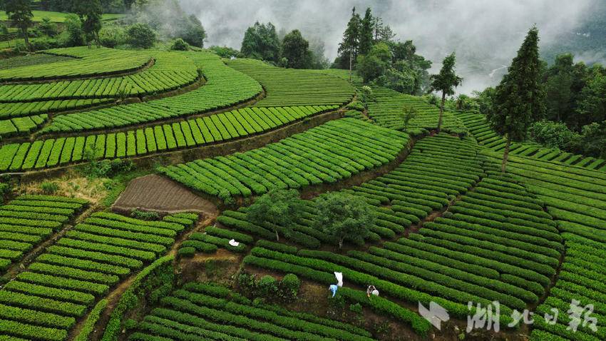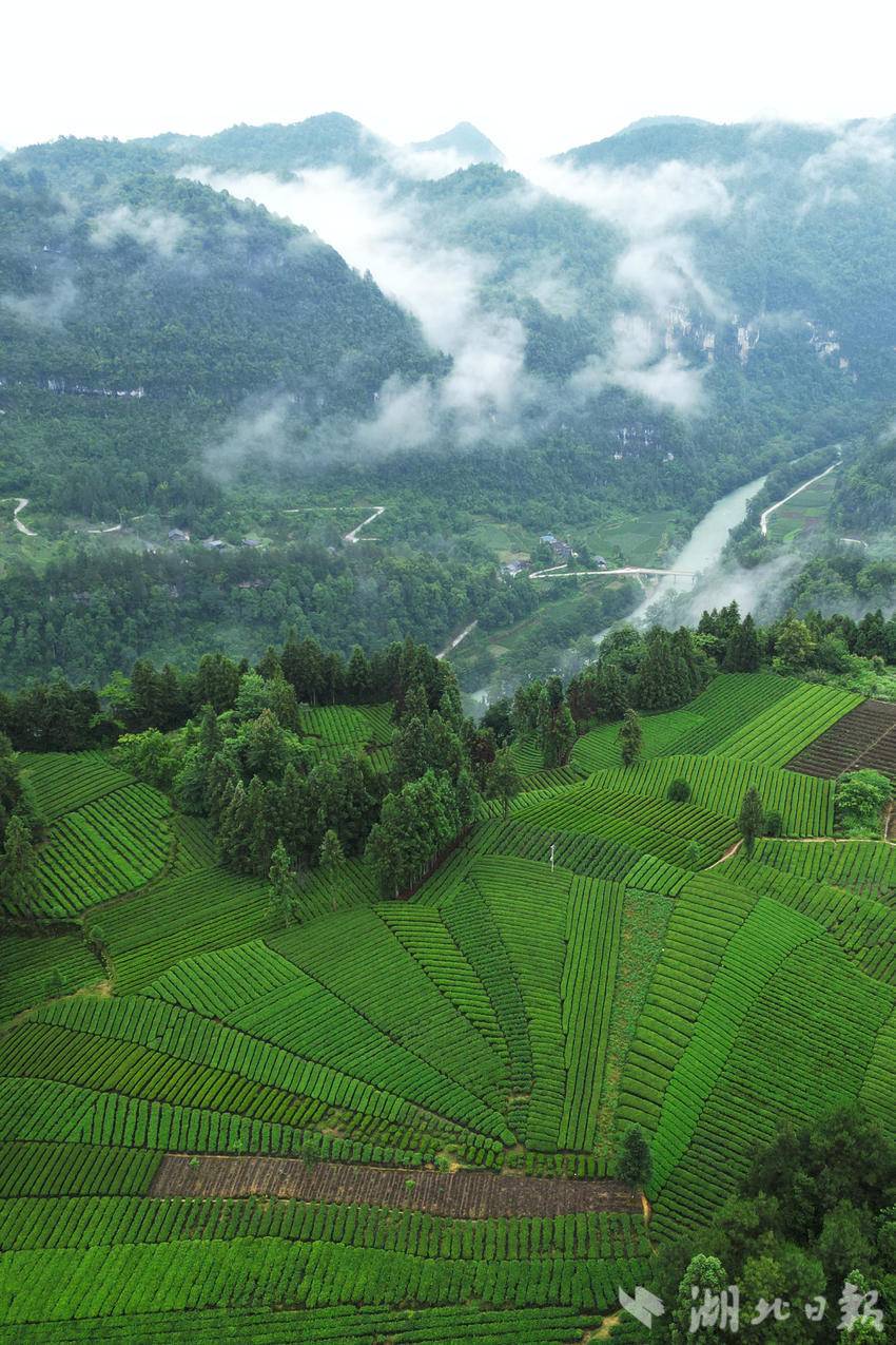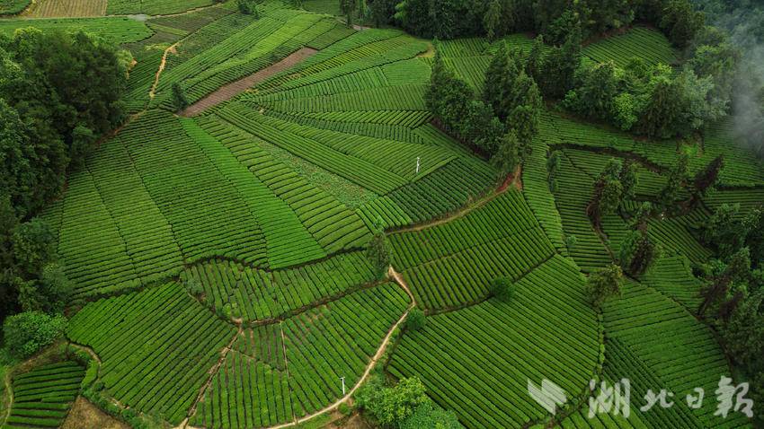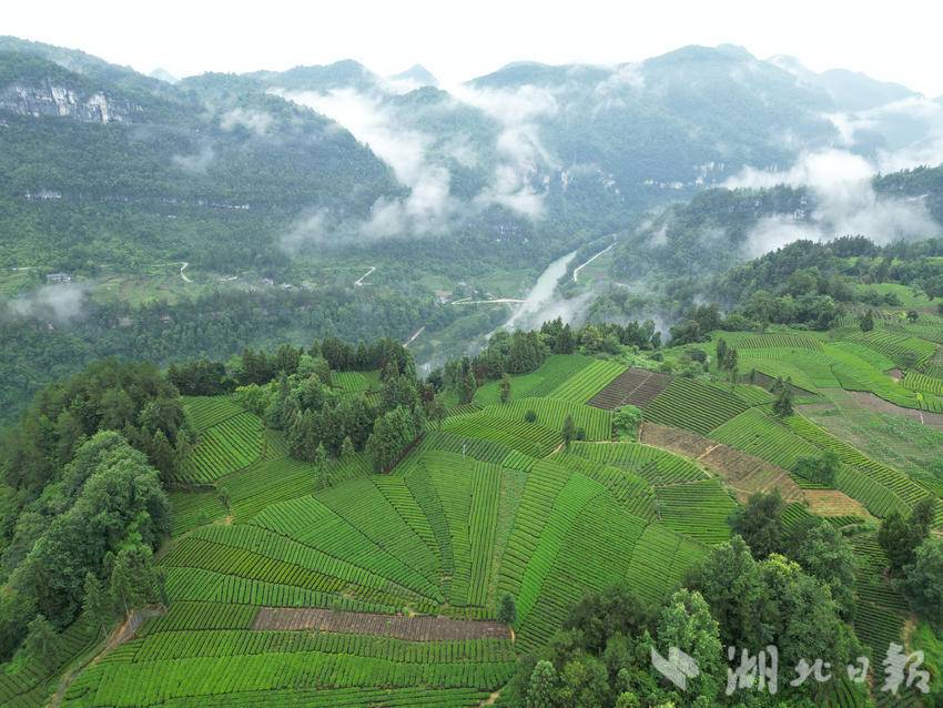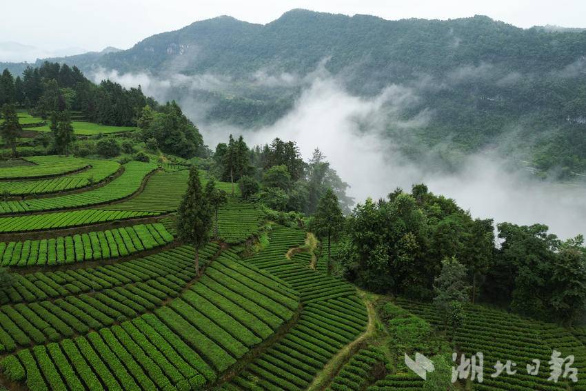 仲夏时节,咸丰县加强茶园夏季管理,绿意盎然的生态茶园在晨雾的映衬下生机勃发,美不胜收。