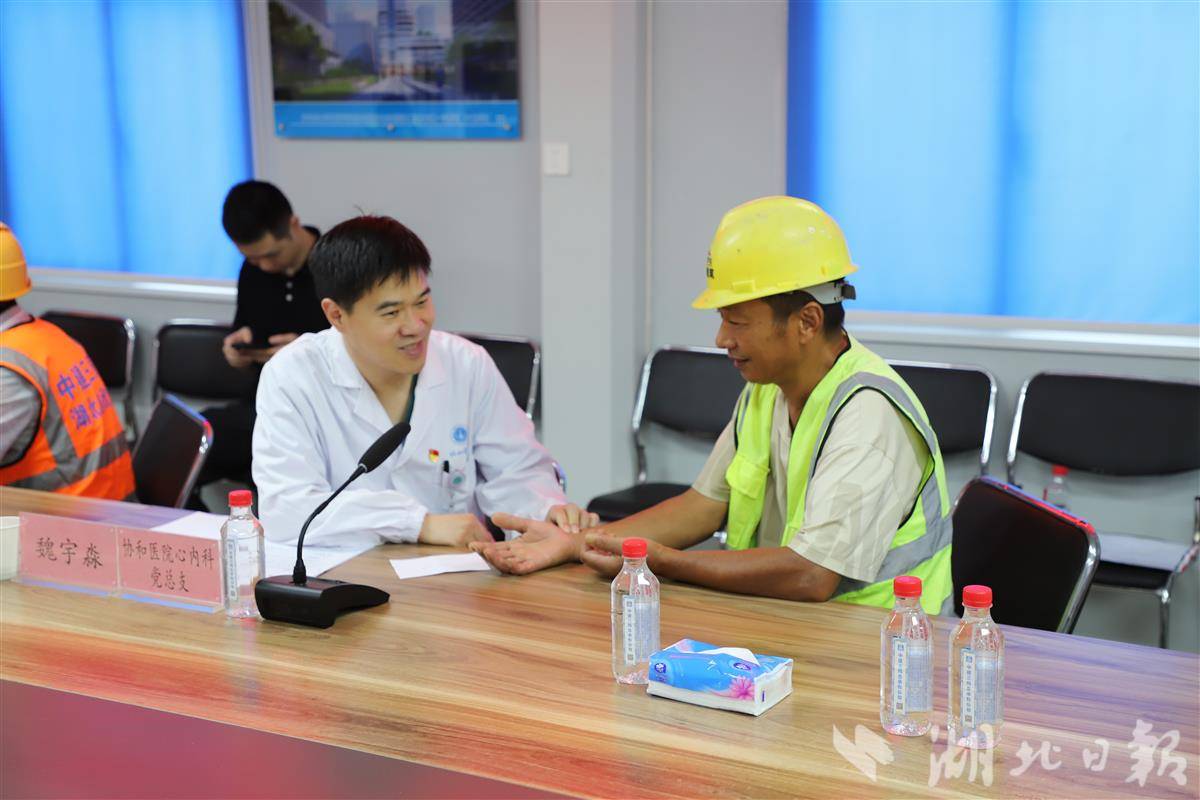 湖北日报讯(通讯员柯华、胡志)梅雨时节,湿热交加,户外作业的健康风险升高。6月23日,中建三局总承包公司协和医院内科楼项目党支部携手华中科技大学同济医学院附属协和医院门诊办公室党支部、急诊科党支部、心内科党总支、后勤党委第一支部联合举办党建活动,为百余位一线建筑工人提供基础体检和健康咨询,将优质的医疗服务送到工地上。