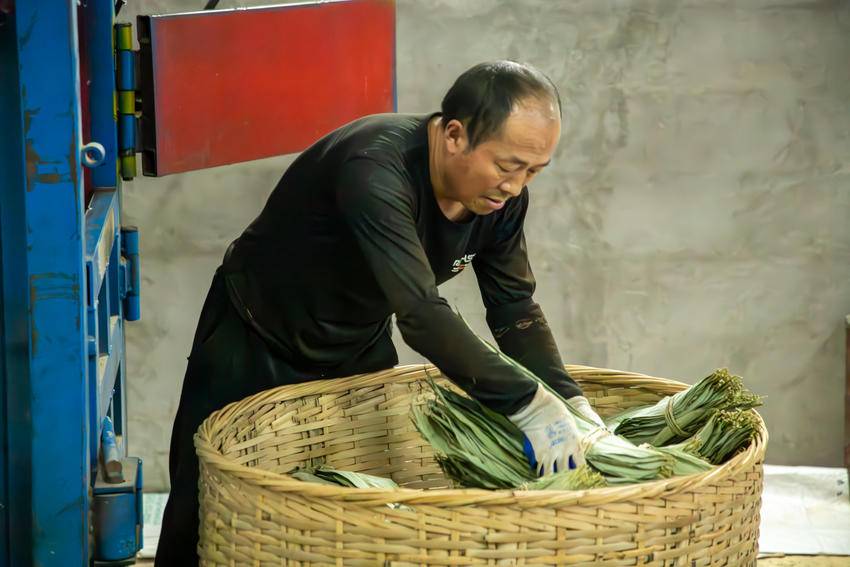 湖北日报客户端讯(通讯员 辛琰、黄宇)6月24日,湖北省长珍粽叶有限公司生产车间内机器轰鸣,粽叶的清香混着烘烤的热气扑面而来,工人们动作娴熟、忙碌不停。有的冲洗叶片,水珠在翠绿的箬叶上飞溅,有的快速分拣出破损残叶,指尖翻飞间将优质粽叶码放整齐,有的麻利地将粽叶束成规整的“小塔”,再送入恒温烘房。