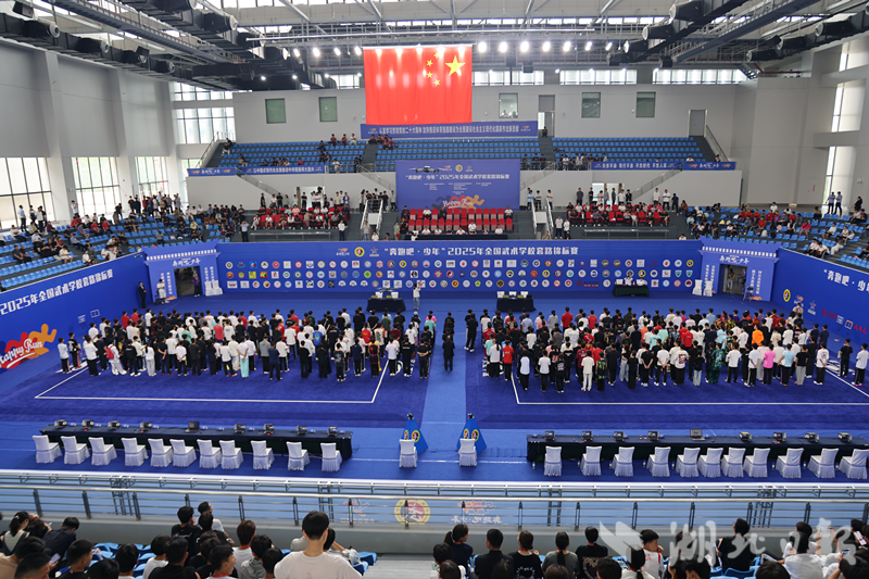 湖北日报客户端讯(通讯员皮道琦、何伟)6月的嘉鱼热浪翻涌,却挡不住中华武学的澎湃激情。6月25日,“奔跑吧·少年”2025年全国武术学校套路锦标赛在武汉东湖学院嘉鱼教学改革基地体育馆开幕。来自湖南、河南、山东、福建等19个省(自治区、直辖市)的144支代表队如百川归海,1300余名武林少侠带着各派绝学齐聚嘉鱼,在刀光剑影的文化自信里,上演现实版“武林盟主”争夺战。