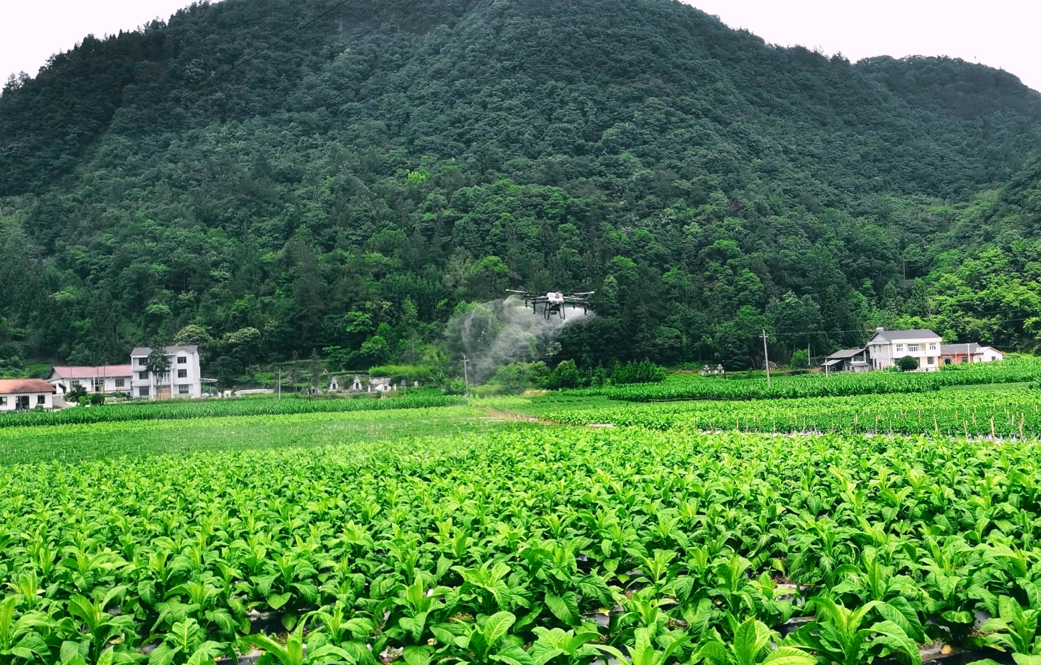 在五里乡六峰磅组烟叶种植基地,种植大户田武庚今年签订了90亩烟叶种植合同。望着正在田间作业的无人机,他满脸喜悦:“以前给这么大面积的烟田打药,得请不少工人,不仅成本高,效率还低。现在有了无人机飞防,1天半就能完成全部作业,省时省力又省心!”