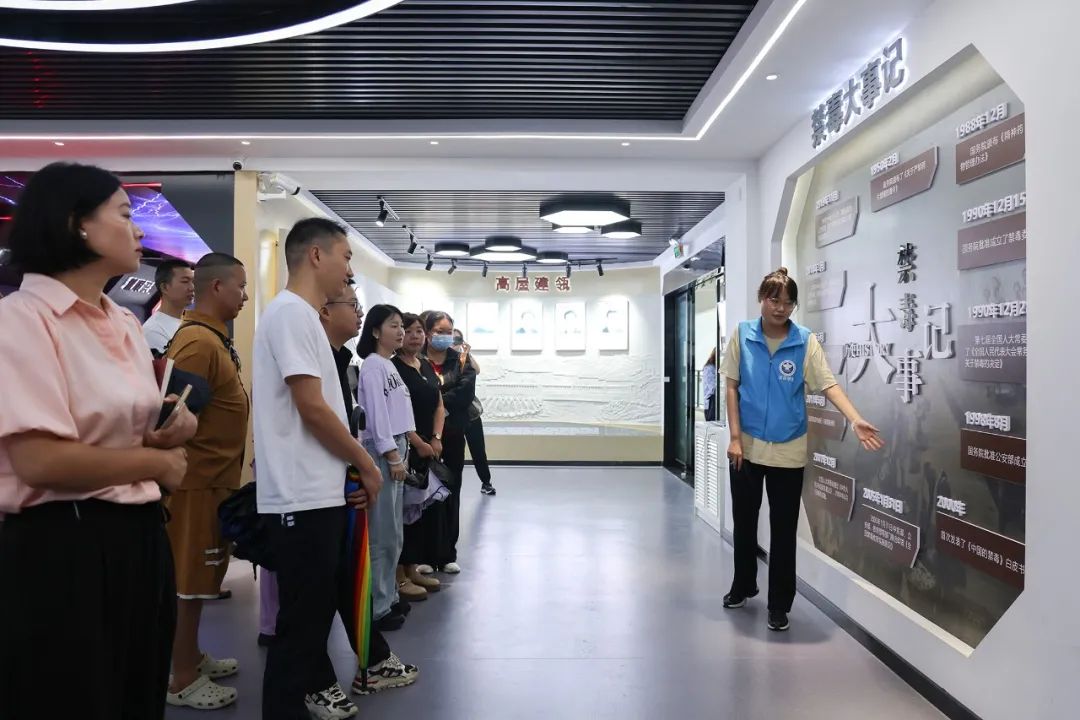 活动现场,全体人员进行了禁毒宣誓,观看了禁毒警示教育片《毒魇》,并走进宜昌市禁毒教育基地,通过图文展板、仿真毒品模型,参观了解毒品种类和宜昌近年来禁毒工作取得的成效。