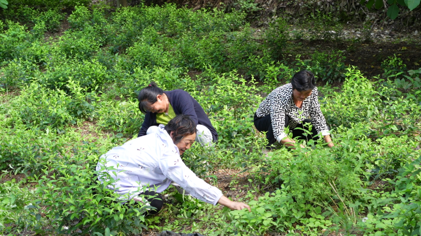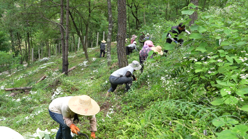 林下中药材种植周期长,费时、费力。为管理好这些成片的中药材,村里聘请周边的村民进行除草、覆膜、收割等日常管护,村民们多了一条增收渠道。