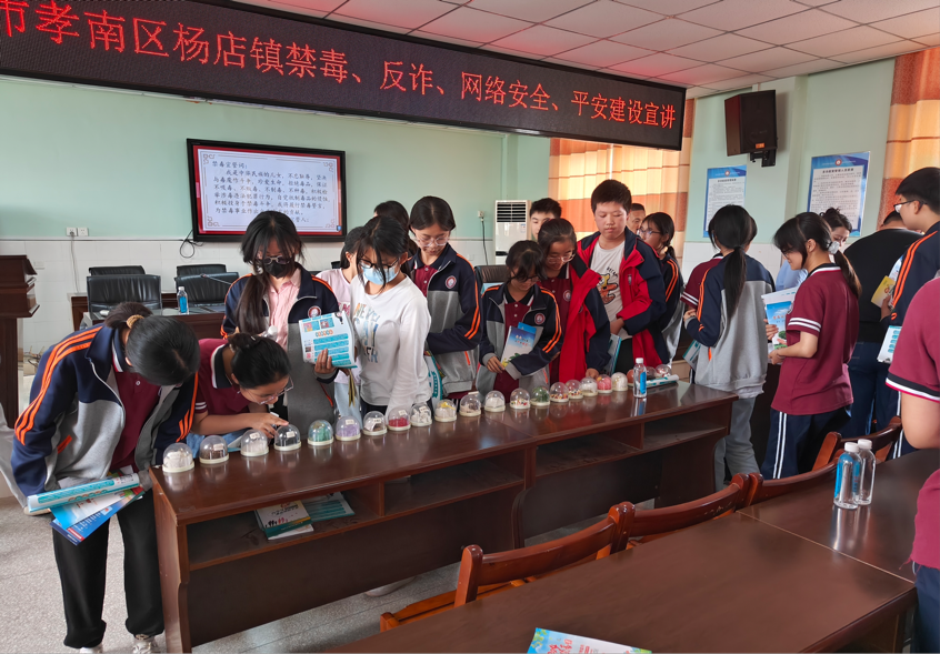 湖北日报客户端讯(通讯员 田乐闻 刘洋凡)在第38个国际禁毒日来临之际,一场别开生面的禁毒宣传活动在杨店初中火热开展。孝感市强制隔离戒毒所、孝南区禁毒委员会、杨店派出所、杨店镇平安建设办、社区戒毒康复中心、杨店镇团委、杨店学区以及杨店初中等多单位联动,将禁毒知识送入校园,在青少年的心中深植“远离毒品,向阳新生”的种子。