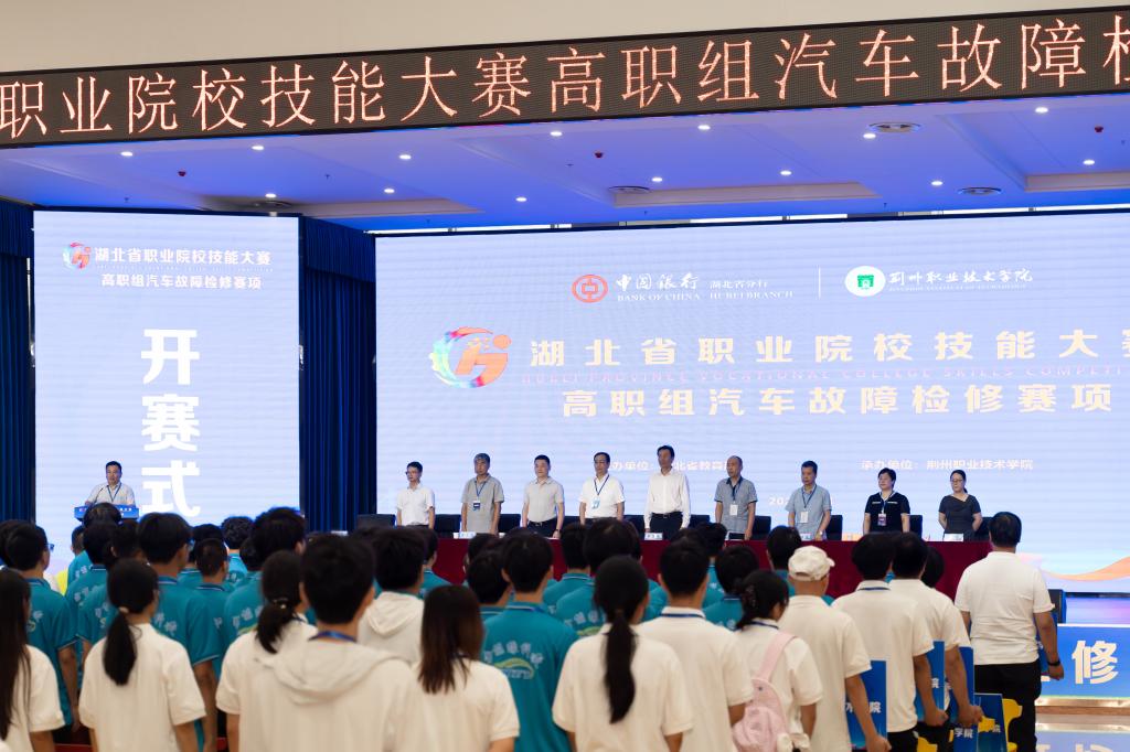 湖北日报客户端讯 近日,2025年“中银杯”湖北省职业院校技能大赛高职组汽车故障检修赛项在荆州职业技术学院举行开赛式。荆州市教育局党组成员、副局长罗华伟,大赛裁判长何国旗教授,监督长陈义教授,仲裁长高丽洁教授,专家组长张忠伟教授,中国银行荆城支行行长曾茜、荆州市教育局职成科科长郭莎出席了开赛式,会议由荆州职业技术学院党委委员、副校长钱亮主持,来自全省 35 所高职院校的领队、指导教师、参赛选手及嘉宾近 200 人共同见证赛事启幕。