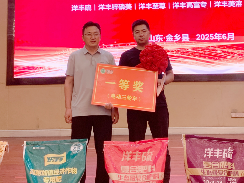 最终,来自金乡县王丕街道孙庄村的孙志城赢得一等奖,荣获“蒜王”称号。在接受采访时,孙志城难掩喜悦:“用了新洋丰的肥料三年了,尤其是洋丰硫在蒜田表现特别好,大蒜不烂苗,个头儿还大,一看就不一样。”他还特别提到,新洋丰农艺师定期下乡进行技术指导,教他如何根据土壤情况调整施肥套餐,“这才是真正的科学施肥,以前种地靠天,现在靠技术啦!”