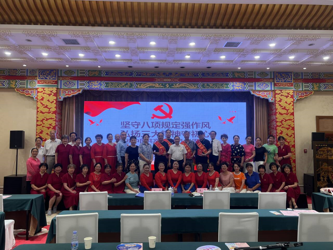 文艺演出在气势恢宏的大合唱《我爱你中国》中拉开帷幕,激昂旋律点燃全场红色激情。合唱《我们走在大路上》《格桑拉》带领大家重温激情岁月,感受党员勇往直前的坚定信念;形体舞《手心有你》以优美舞姿传递温暖关爱,展现团结一心的精神风貌;丁字桥童声合唱团带来的《你是我的光》让大家感受到小朋友们对党的敬仰与追随;《刘大娘笑哈哈》让大家领略传统戏曲的独特魅力,感受文化传承中的坚守与创新;藏族舞《最美情缘》歌颂了中华民族团结奋进的精神;男女声二重唱《祖国不会忘记》致敬了每一位坚守岗位、践行八项规定、弘扬三大精神的奋斗者。整场演出将红色文化与艺术表达深度融合,为观众献上精神盛宴。