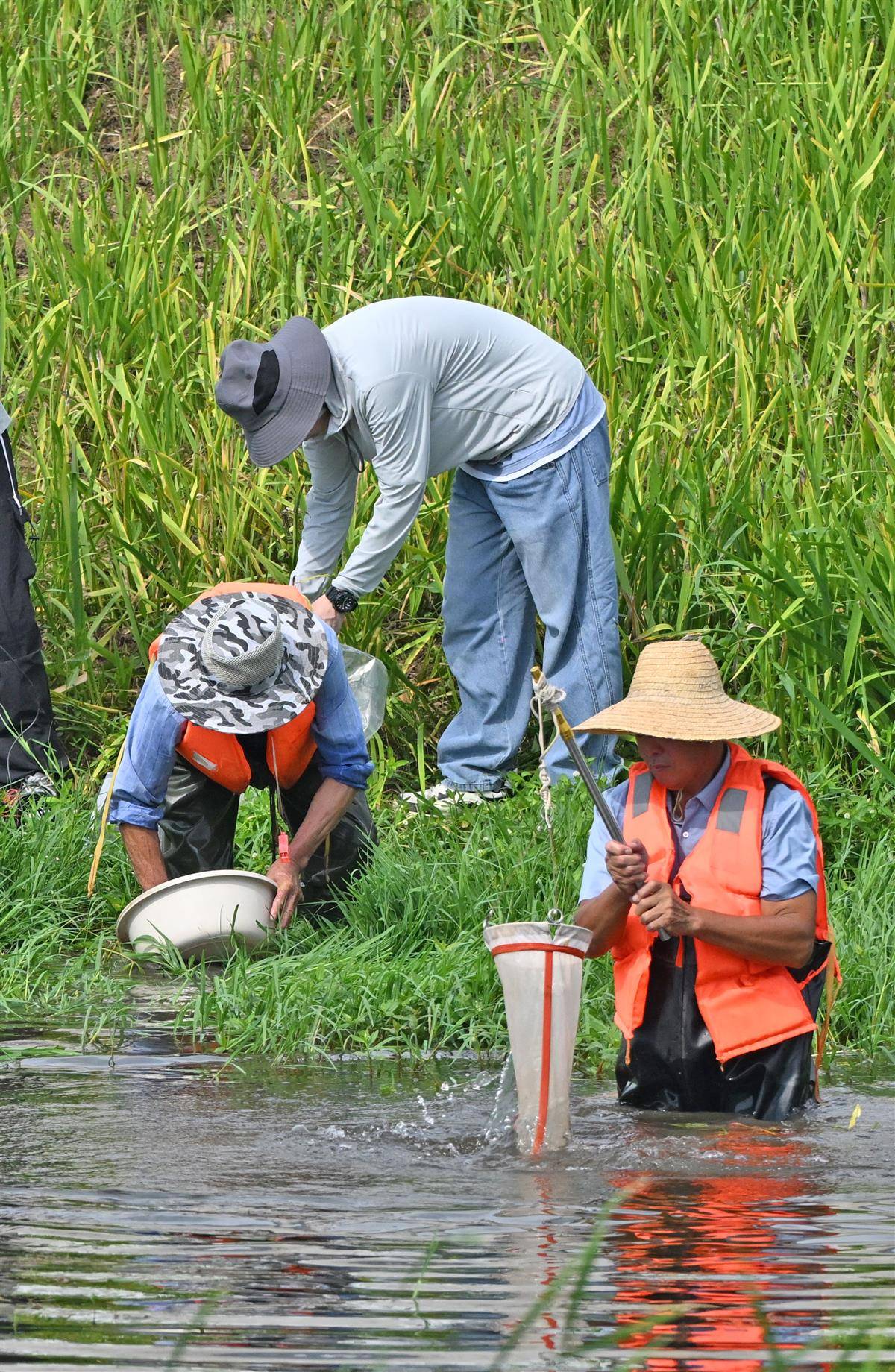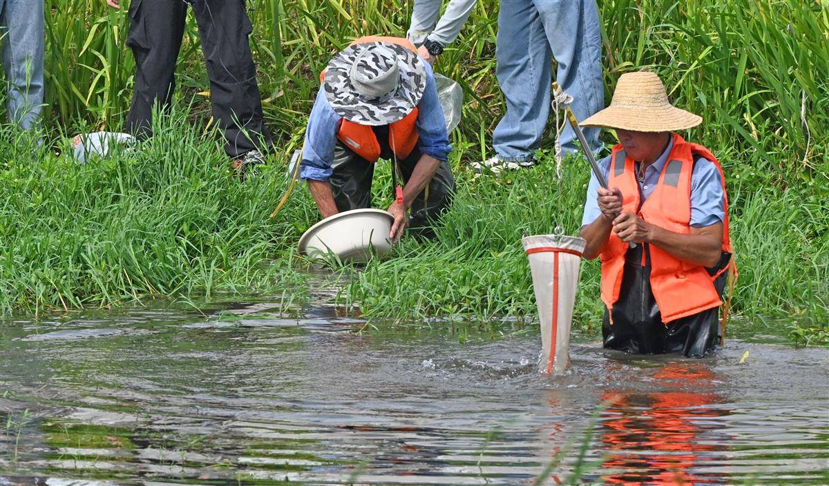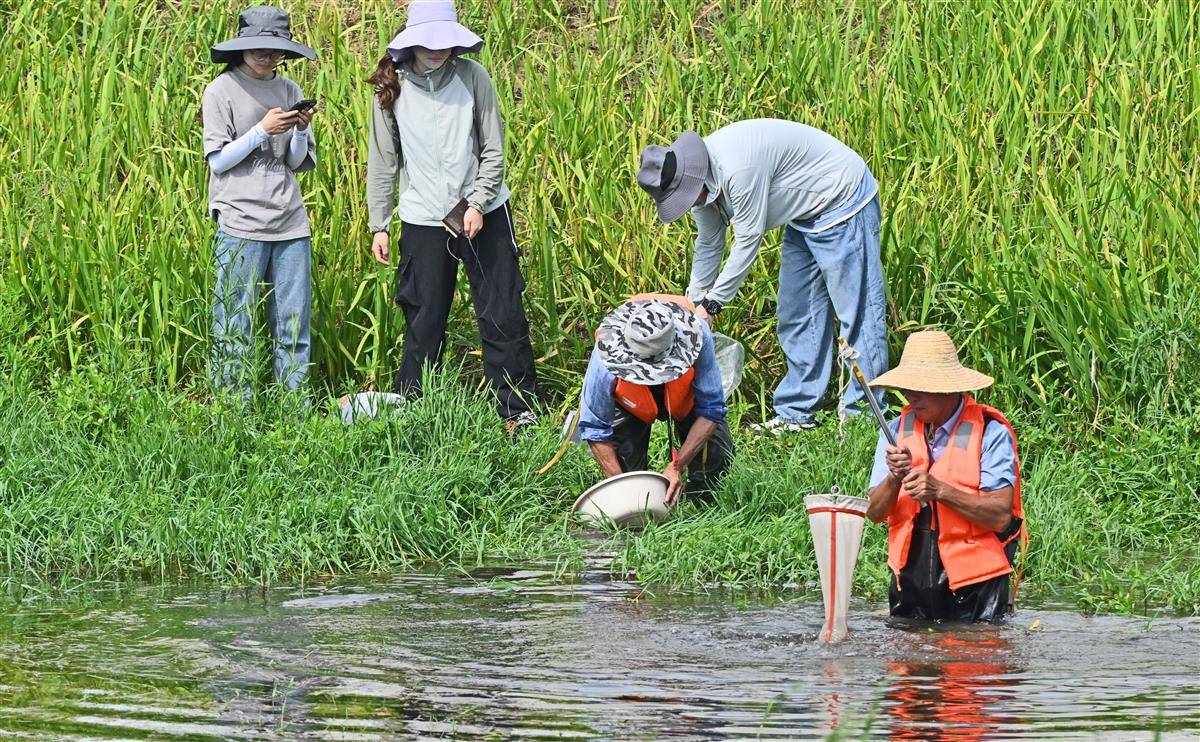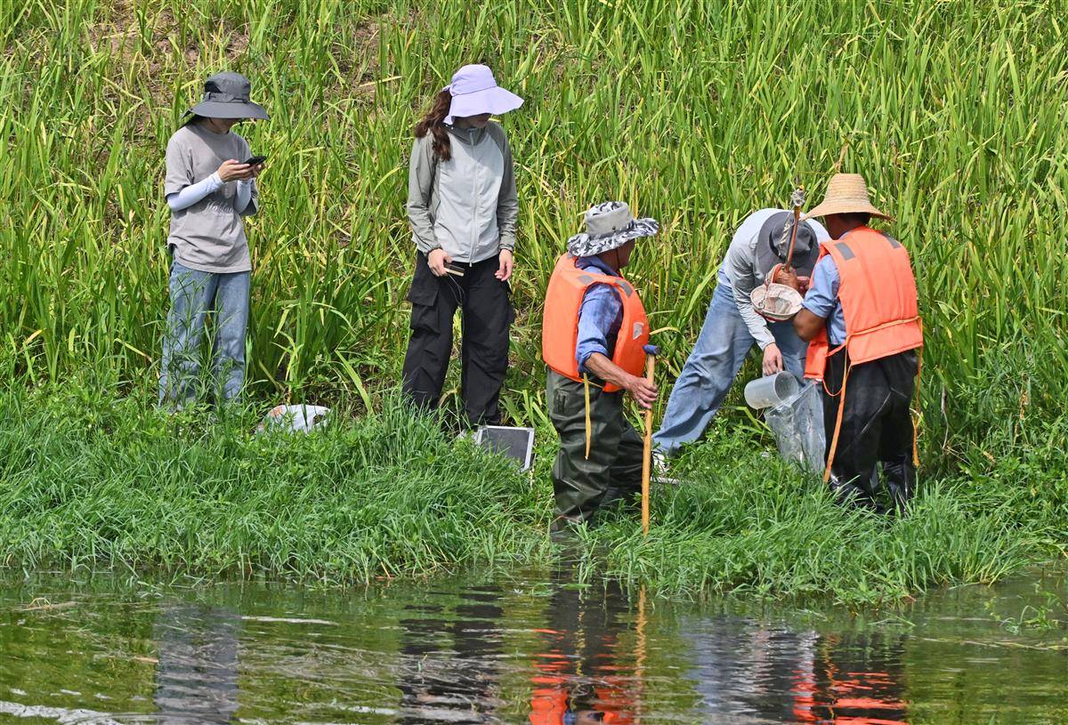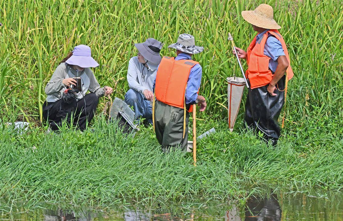 7月1日,枝江市金湖国家湿地公园湖畔,湖泊养护工与湖北大学水质监测团队正紧张采样。透明的塑料瓶中盛满新鲜的湖水与底泥样品,是揭示金湖生态健康的关键密码。近年来,枝江市为金湖量身打造“陆域截污治污、湖滨生态护坡、水面退垸还湖、水底植被重建、全域智慧监管”的立体式生态保护修复体系。十年耕耘,千顷湿地迎来新生:金湖水质从2015年劣Ⅴ类跃升至Ⅳ类,湖泊水体透明度由30厘米显著提升至90厘米。更令人欣喜的是,“水下森林”重现生机,水质净化能力显著增强,一个健康平衡的生态循环在此初步成形。(湖北日报全媒记者 刘曙松 通讯员 毛晓娜 田雪莲 摄)