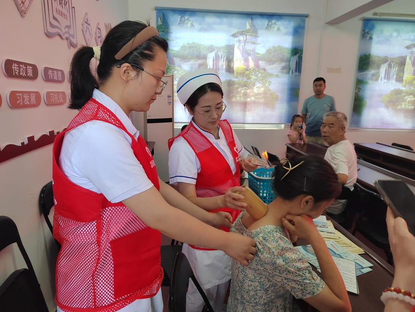 接着,贾主任为居民们提供把脉问诊的服务。通过望、闻、问、切,详细了解居民的身体状况,耐心解答居民的健康疑问,并结合每个人的体质特点,提供个性化的夏季养生建议和治疗方案。活动现场还设置了免费体验区,居民们兴致盎然地体验刮痧、拔罐、针灸、敷贴等中医治疗技术。