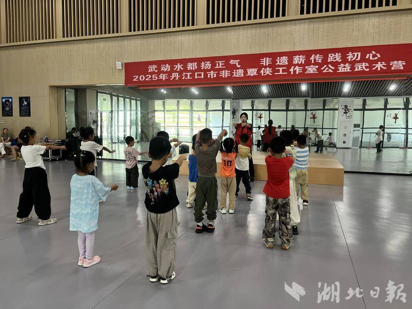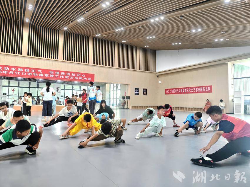 湖北日报客户端讯(通讯员 巫铭铭 李旭勇 何钰淇)为弘扬中华优秀传统文化、践行社会主义核心价值观,7月3日,由丹江口市文化馆非遗保护中心、丹江口市团委、覃侠工作室联合举办的“传承非遗武术,弘扬传统文化主题”夏令营在市文化馆正式开营。本次夏令营邀请覃侠工作室的专业武术教练团队,通过8天的体能训练、传统武术教学、武术礼仪研习及非遗文化体验,带领青少年沉浸式感受中华武术的刚柔之美与非遗文化的深厚底蕴。