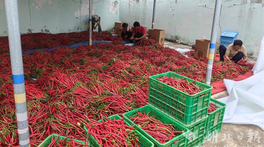 据宜昌可也农业发展有限公司负责人段胜峰介绍,今年线椒种植迎来了大丰收,聂家河村基地共种植了200亩线椒,“目前正值采收旺季,一次采收红椒就达到了4万斤,收益约8万元,采摘季能带动周边50户农户参与务工,人均可增收约3000元。”