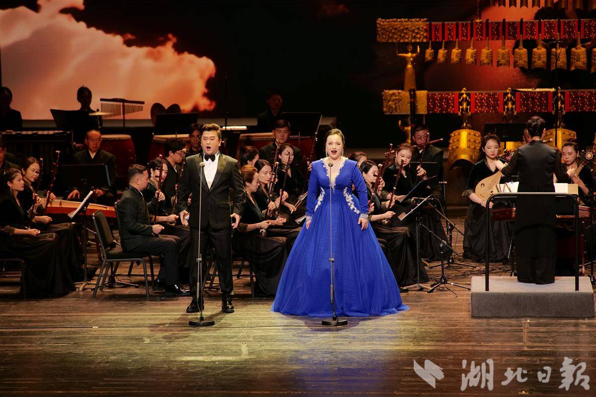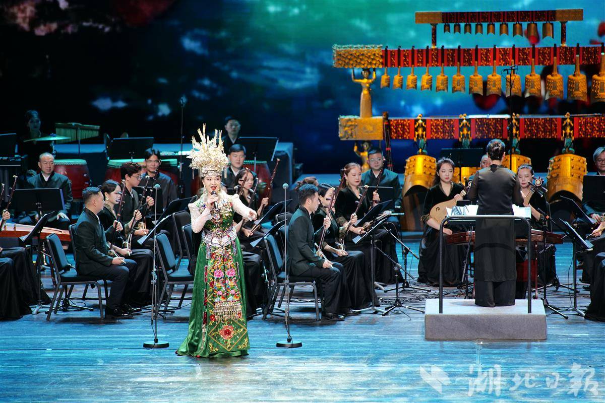 管弦交响,动人心弦。当晚呈现的多首大型器乐音乐作品,展现了浓厚的华夏风情、荆楚风韵,传递着昂扬奋进的激情。编钟与民族管弦乐《千年回响》《楚韵千秋》《荆楚雄风》,以编钟与民族管弦乐队的宏大交响,展现古代楚人的田园生活、征战场面,再现古八百年楚国的盛世辉煌,以“华夏正音”讴歌新时代美好景象。民族管弦乐《我的祖国》以脍炙人口、充满激情的旋律,奏出激昂的颂歌,听来使人心潮澎湃。