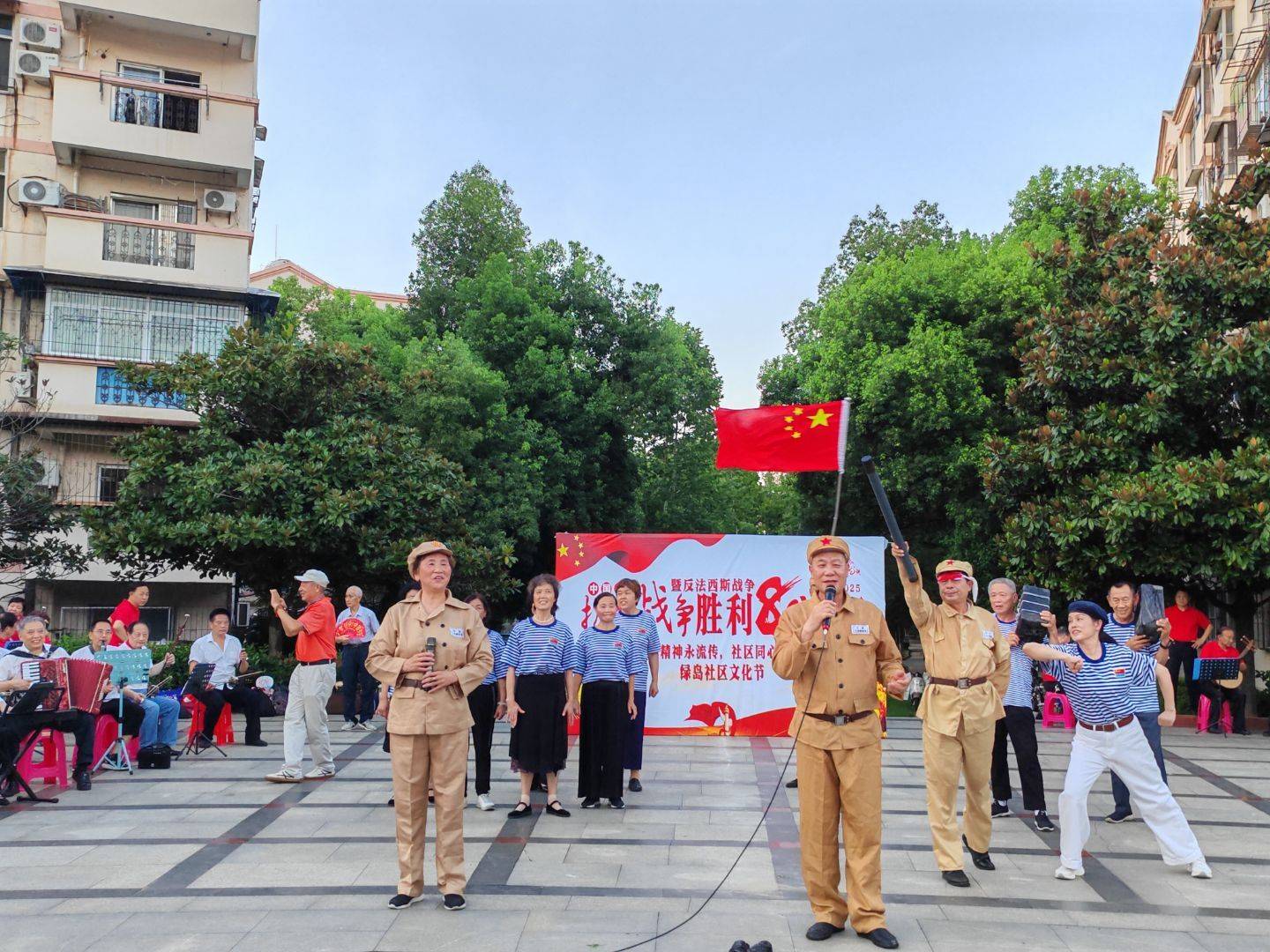 湖北日报讯(通讯员柯丹萍)7月2日,武汉经开区沌阳街道绿岛社区特邀辖区社会组织、群团组织及志愿者队伍开展“抗战精神永流传社区同心向明天”公益慈善文艺节,纪念中国人民抗日战争暨世界反法西斯战争胜利80周年,吸引众多居民欣赏。