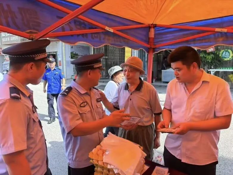 长港派出所联合鄂州农商行长港支行启动“警银联动・反诈同行”活动,构建“线上+线下”立体宣传网络。民辅警与银行员工组成“反诈宣传先锋队”,深入菜市场、商圈设立宣传点,通过剖析“刷单返利”“冒充公检法”等高频骗术、发放手册、现场答疑,精准提醒老年人警惕“保健品诈骗”,商户防范“虚假贷款”陷阱。