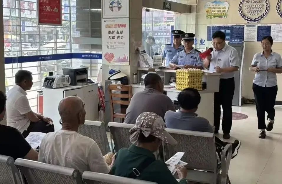 他们充分发挥银行网点阵地优势:设置反诈公告栏、悬挂海报,利用客户等待时间开设“反诈微课堂”。民警解析“杀猪盘”等新型手法并推广国家反诈中心APP功能;银行员工解读账户限额管理等政策。有奖问答活动发放礼品80余份,吸引超50名群众参与。