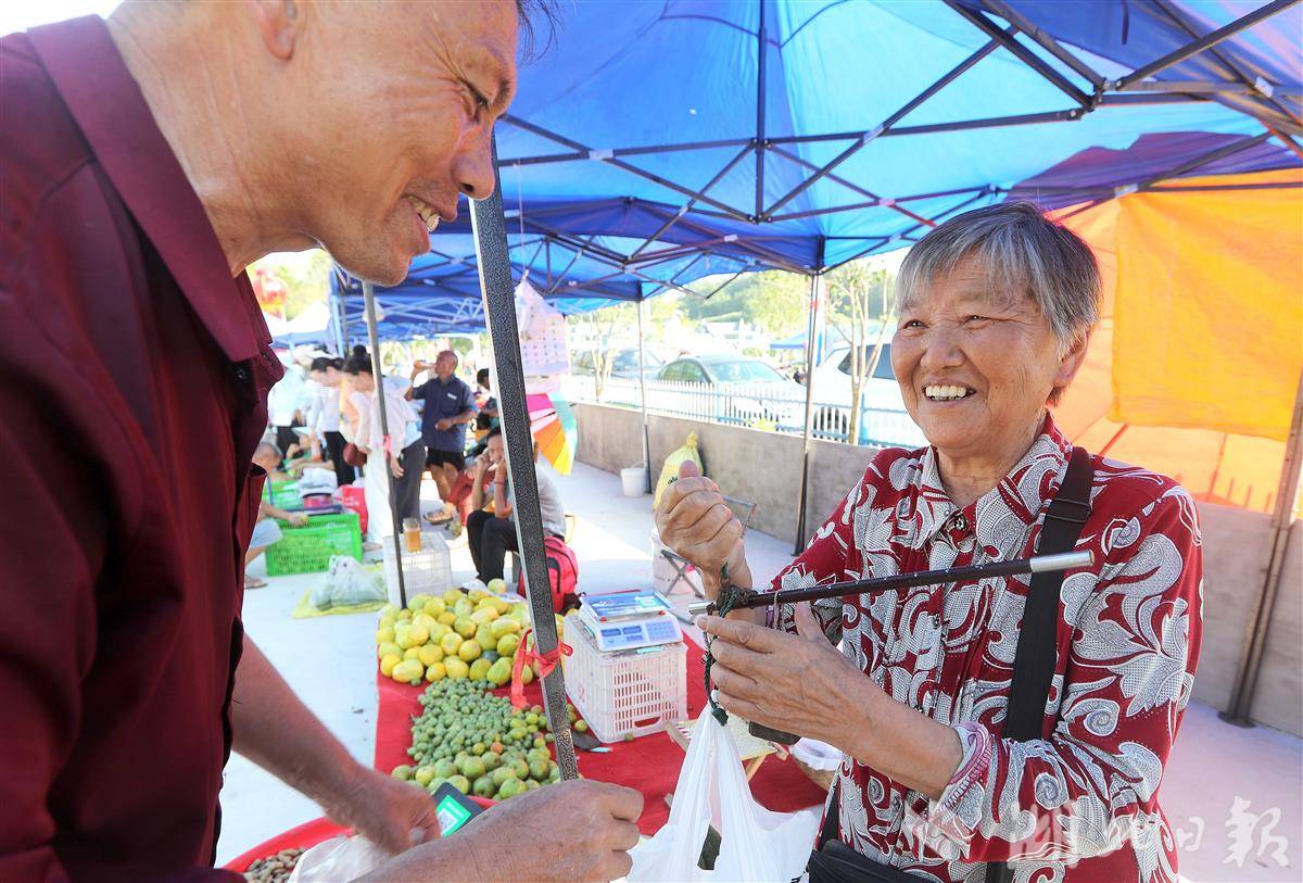7月6日,在荆门市东宝区栗溪镇花屋场村,城乡游客赶集购物感受乡村烟火气。