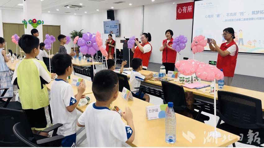 湖北日报客户端讯(通讯员江芳、刘木木、李玲)7月7日上午,中广核湖北拓普综合楼培训中心传来一阵阵欢笑声,汉川市刘家隔镇新时代文明实践所、妇联、团委、文化站、社工站、未保救助站联合汉川市总工会、中广核湖北拓普工会、汉川市心连心社会工作服务中心共同举办的暑假爱心托管班正式开班。
