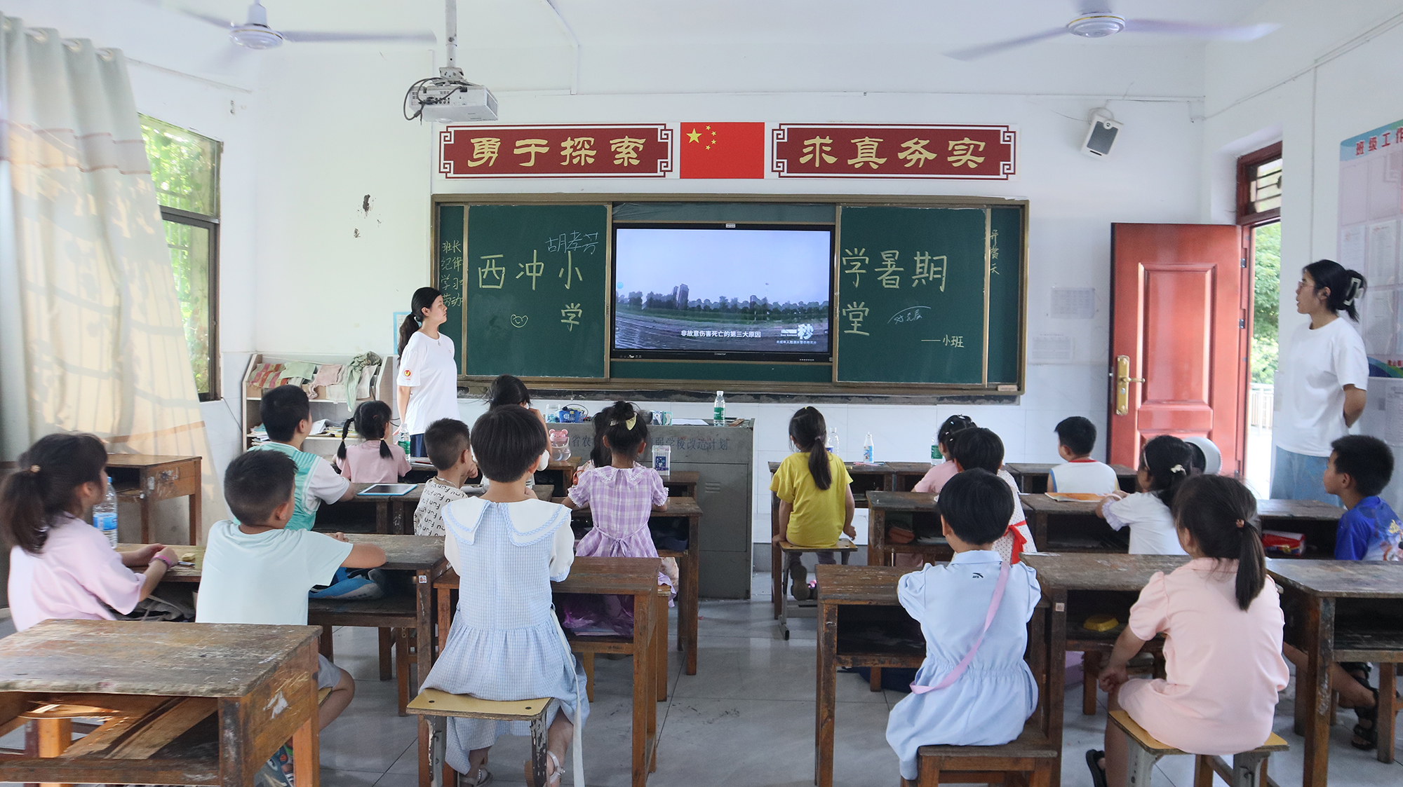 支教队志愿者结合不同年龄段学生特点,分时段、分重点开展安全教育与防溺水专项教学,为学生们筑牢暑期安全防线。
