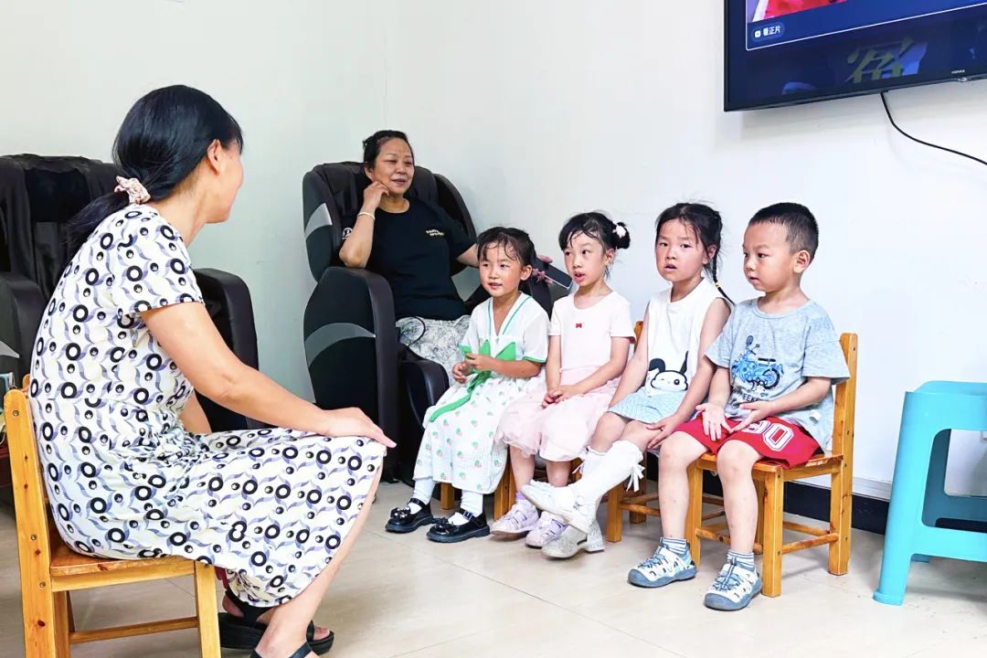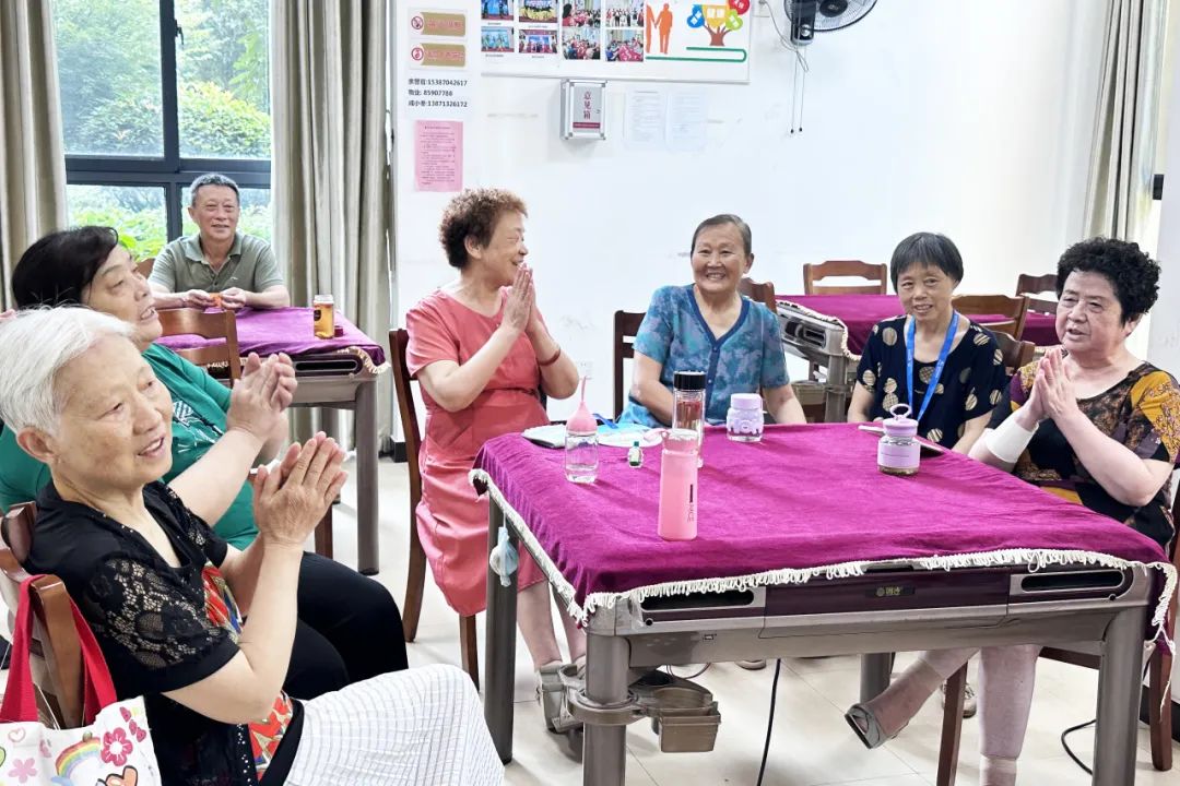 前川街德兴社区纳凉点同样热闹非凡。舒适的座椅整齐排列,茶水桶始终充盈备好,大屏幕上放着电视剧,大家看得津津有味,时不时传来几声欢笑。