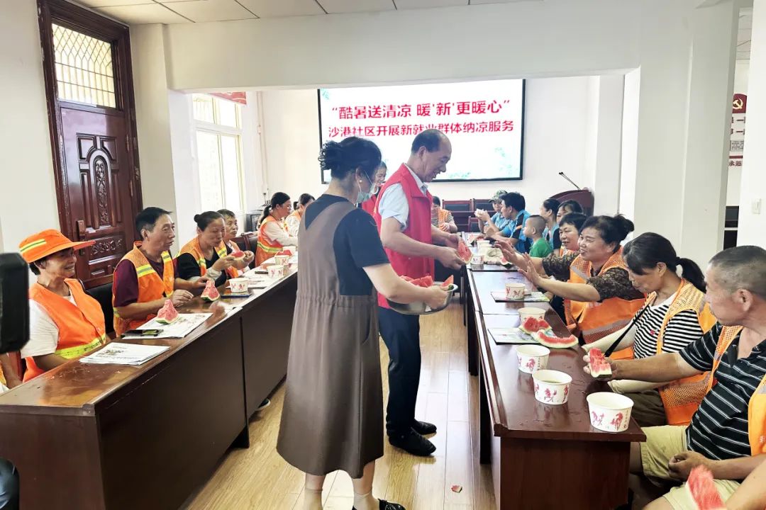 为最大限度满足社区居民及户外劳动者的纳凉需求,沙港社区因地制宜,将社区会议室、阅览室等场所灵活转化为功能完善的纳凉点。社区党支部书记王安桦说:“我们将努力提供好服务,将社区打造成传递城市温度、交流情感、增进友谊的温馨场所。”