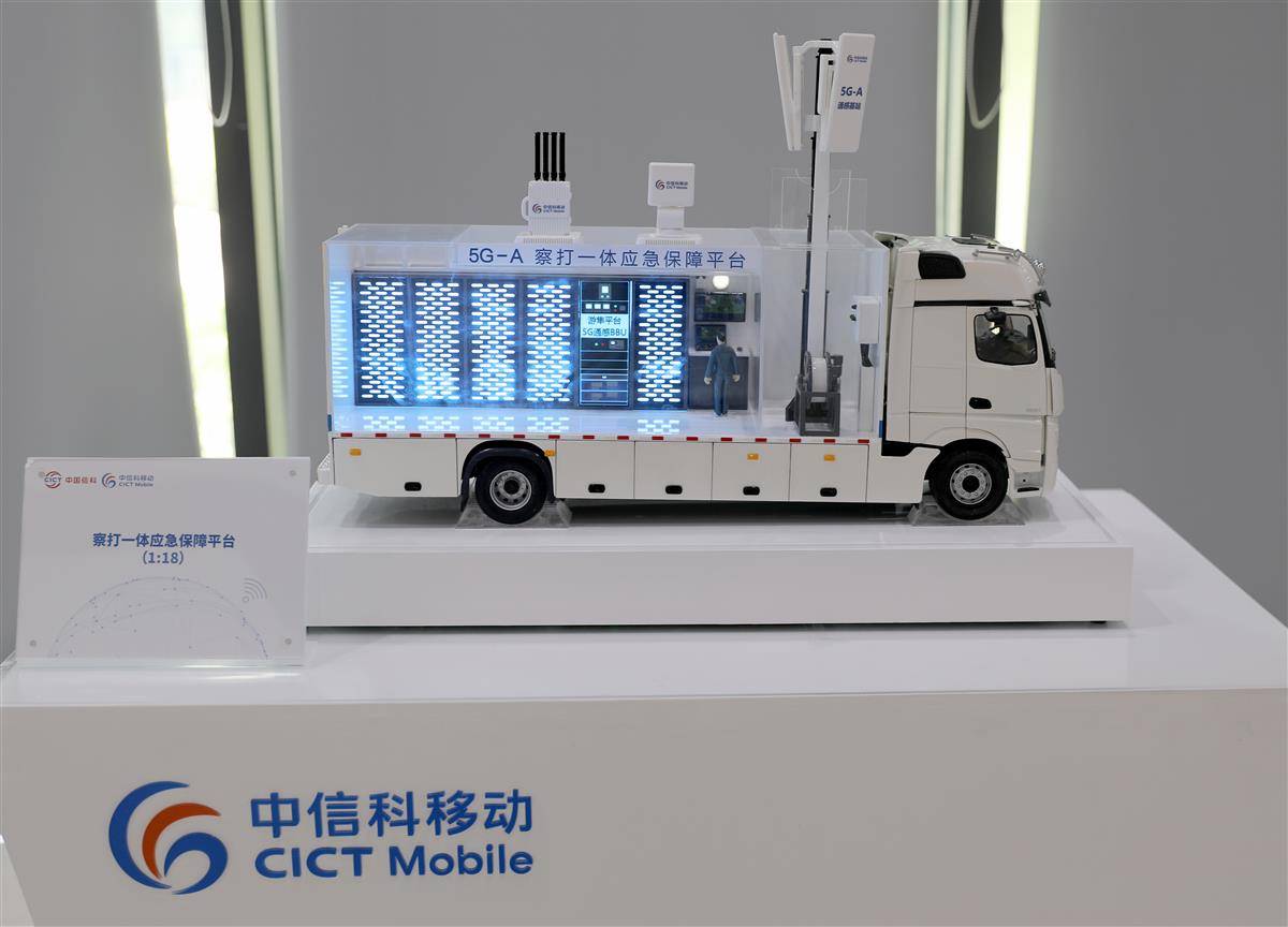 中信科移动5G-A察打一体应急保障平台模型,不仅能保障通信,更能智能化排查违规飞行物。(受访单位供图)