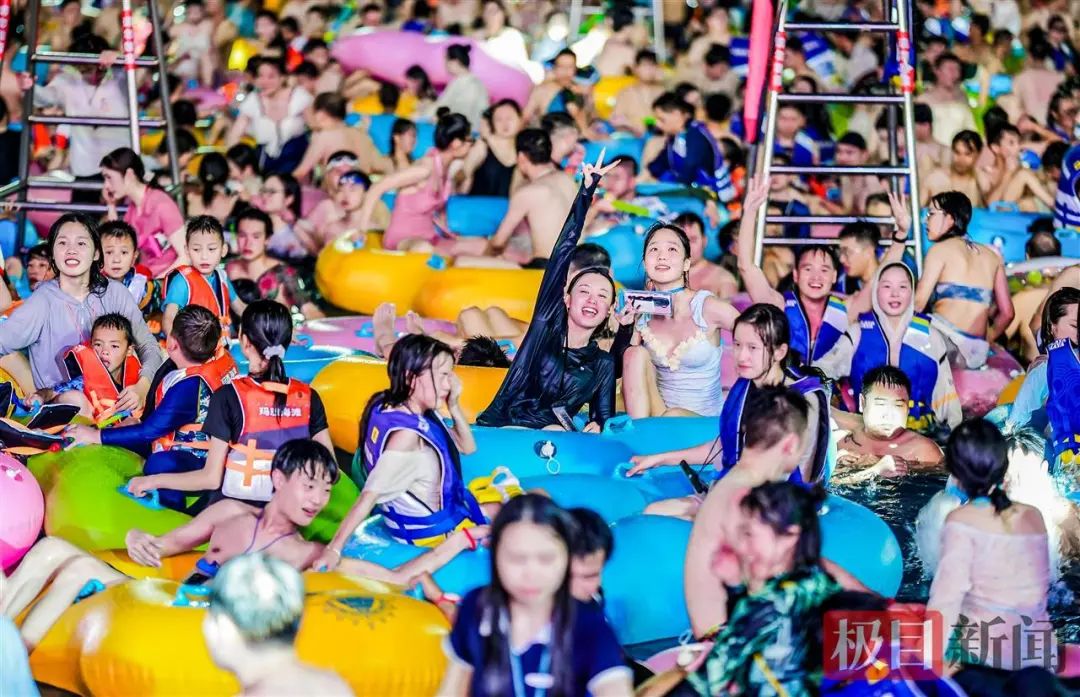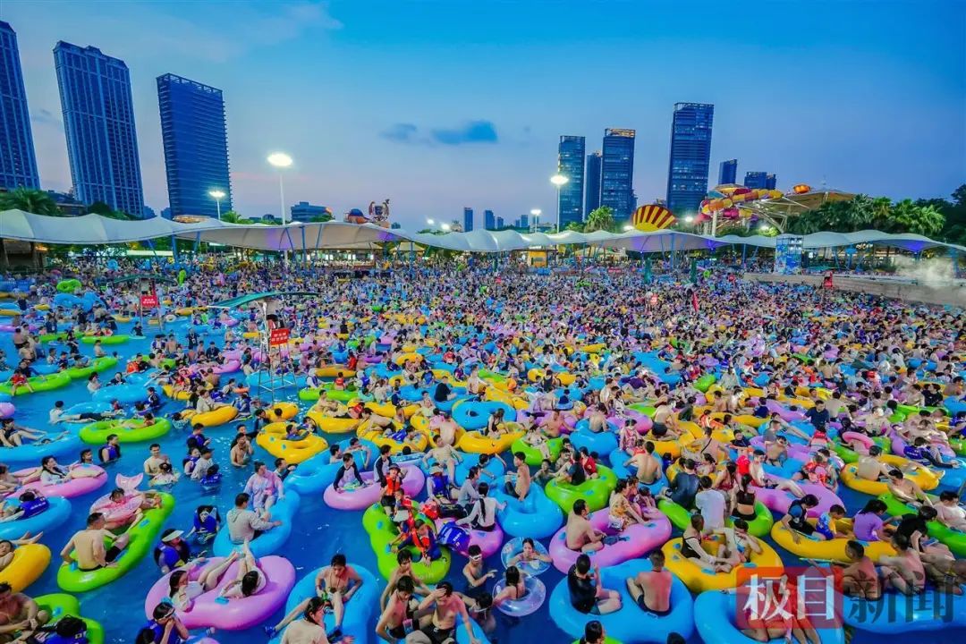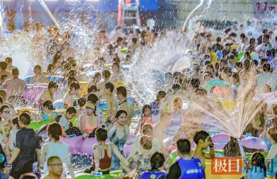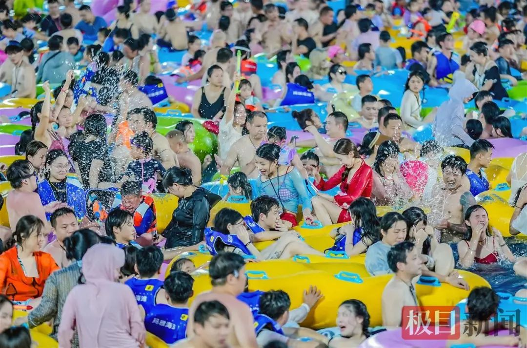 高温天气持续激活武汉亲水经济。7月8日傍晚,太阳西下,武汉玛雅水上乐园的游客络绎不绝,造浪池内观赏水上电音节的游客更是熙熙攘攘,热闹非凡。据悉,自6月28日起,玛雅海滩开放夜场,创新推出“夜游+音乐”沉浸式水上娱乐。每天吸引了一万多名游客前来体验水上清凉狂欢盛宴。
