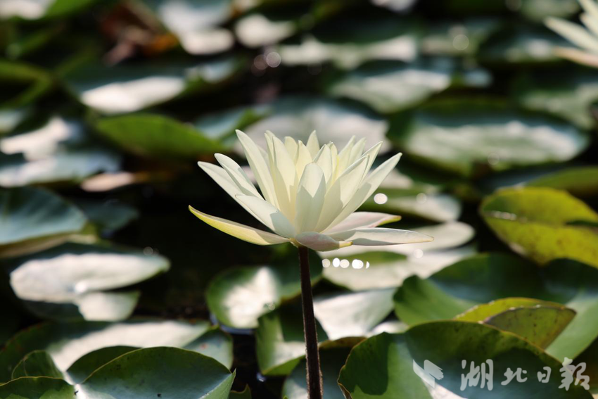 湖北日报客户端讯(通讯员曾玉洁、詹倩)入夏以来,三峡植物园水生植物园中一朵朵睡莲在碧波之上悄然绽放,仿佛走进了克劳德・莫奈的画作《睡莲》之中。沐浴着清晨的阳光,睡莲瓣型层叠、亭亭玉立如水上仙女,有的花瓣白净清新脱俗、娇艳多彩,有的花蕊如日出般鹅黄,有的花瓣呈粉黄色渐进展示。