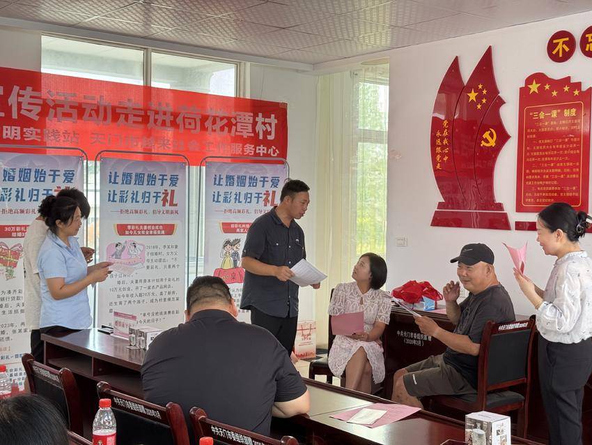 湖北日报客户端讯(通讯员 罗玉烨)7月9日,天门市岳口镇荷花潭村活动室内欢声不断,“学习村规民约 争做文明市民”主题宣传活动以“理论+文艺+服务”的创新形式火热开展。活动由市民政局、市实践办指导,村文明实践站与社工组织联合承办,吸引了50余位村民参与。