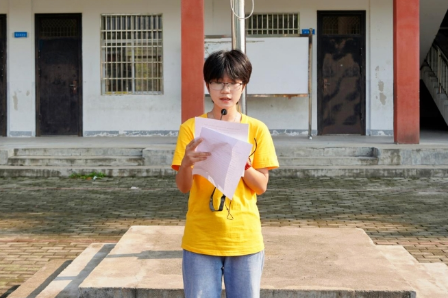 爱国,是融入日常的每一次注目与行动。国旗下,志愿者万晓雨以“青春担当,薪火相传”为题发出时代召唤:她深情寄语:“作为强国复兴的预备队和生力军,当自觉传承红色基因,将爱国情、强国志,化作勤学苦练的报国行!”学生代表何紫妍提出要用知识武装头脑,用行动践行理想,清脆坚定的讲话尽显新时代少年的担当。