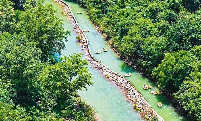 南漳的盛夏,总能在山水间找到解法。龙王峡漂流河道,沿山势蜿蜒约8公里,溪流在峡谷间高低落差约60米。乘一艇顺流而下,约莫半日光景(约3小时)。沿途水道随峡谷地形起伏变化,时而狭窄湍急,时而又水流平阔,游客好不惬意。 (选自 湖北日报客户端南漳频道 文/图 王玮杨澳 胡先哲 刘威 刘江 王磊)