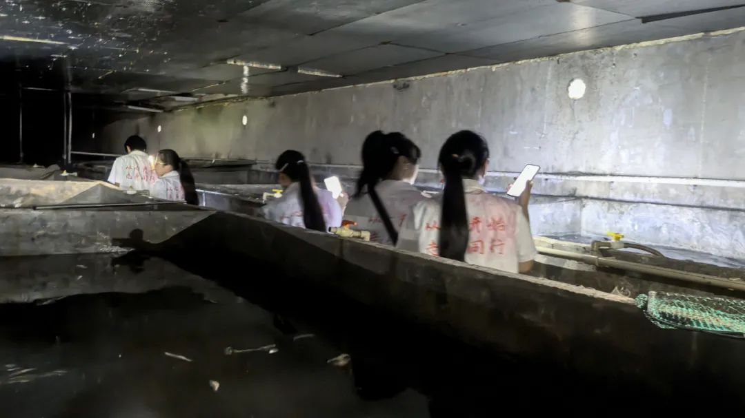 在娃娃鱼养殖区,队员们走进昏暗的养殖房,借助手机灯光才看见清澈见底的池水里,一条条体型硕大的娃娃鱼静静地趴在池底。“娃娃鱼对水质要求高,养殖成本投入大、风险高、生长周期长,我们不断摸索养殖技术,提高成活率和产量,带动村民们一起增收致富。”养殖区负责人向队员们介绍。