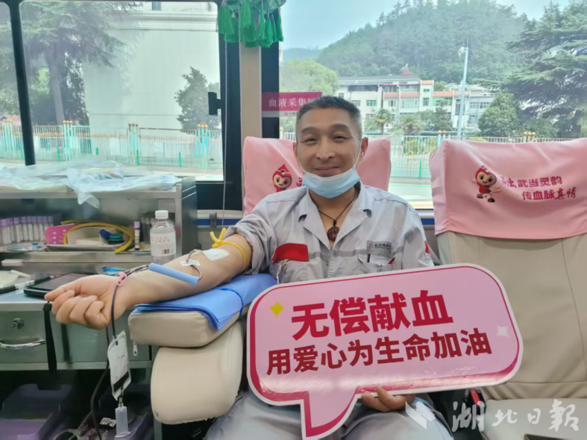整车工厂职工万长华,已献血18次,累计6800毫升。他笑着说到,“每次撸起袖子都觉得挺轻松的,看着血袋慢慢满起来,心里自豪感满满。”