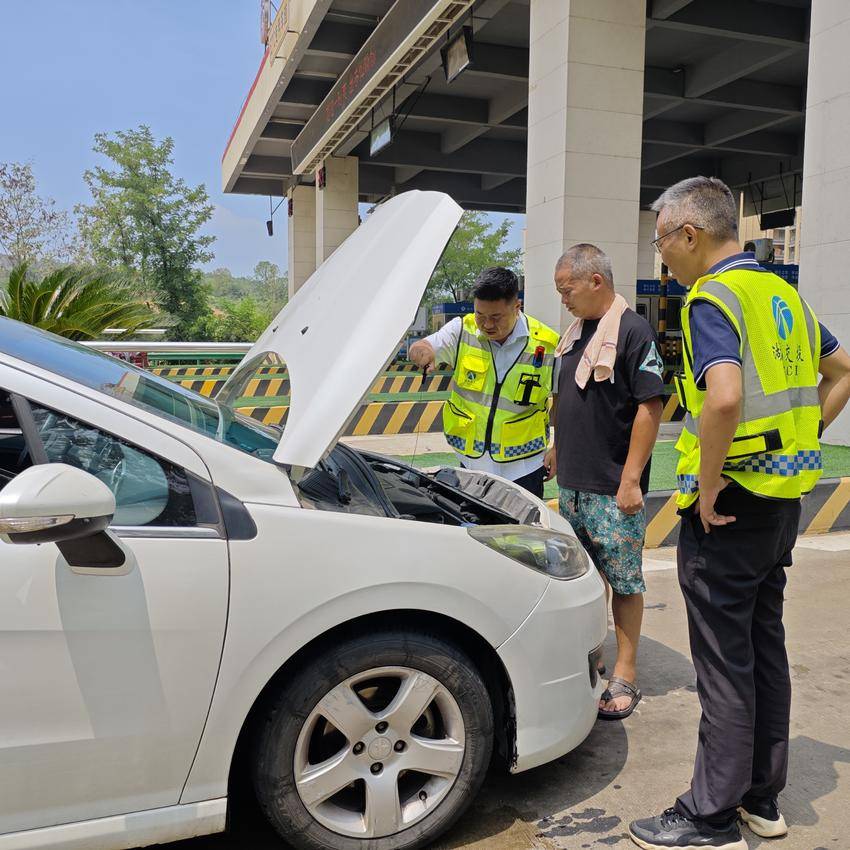 经初步检查,车辆因发动机拉缸抛锚,短时间内难以修复。工作人员当即询问司机需求,帮忙联系了就近的维修厂,为维修事宜打通前置环节。同时,考虑到正值正午时分,户外温度过高,工作人员将司机邀请至“爱心小屋”纳凉,临近午饭时间,又热情邀请司机到食堂用餐,一碗热汤、几样家常菜,让奔波途中的司机吃上了一顿热气腾腾的午餐。不久后,维修人员赶到现场对车辆进行检修,经过一番忙碌,故障车辆顺利修复。临行前,司机再次向工作人员挥手致谢,驾车缓缓驶离,踏上了后续的旅程。