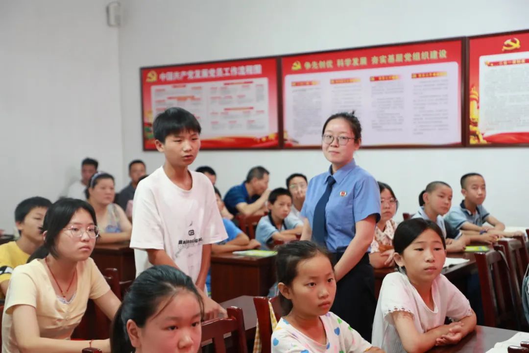 活动现场,郧阳区检察院干警林莹作了《七彩假期 检爱同行》法治辅导讲座。她结合案例,详细向参加活动的孩子及家长讲授《中华人民共和国未成年人保护法》《中华人民共和国预防未成年人犯罪法》《中华人民共和国家庭教育促进法》相关内容。她采用有奖问答、情景模拟等方式,声情并茂地讲授家庭、学校、政府、司法、网络、社会对青少年的“六大保护”。告诉孩子们,暑假生活,注意安全,要注意保护个人信息,不要沉迷于网络,远离电信网络诈骗、隔空猥亵、溺水等潜在危险,学会自护知识,学会自我保护。