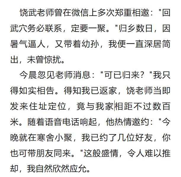 席间觥筹交错,谈笑风生。饶老师举杯笑道:"寒舍虽小,却备了四大冰箱物质,藏了不少陈年佳酿。你们这些文友随时可来,咱们煮酒论英雄。"说罢,又指着书房里堆积如山的书稿,"最近有两部百万言的长篇正在付梓,到时还望诸位斧正。"