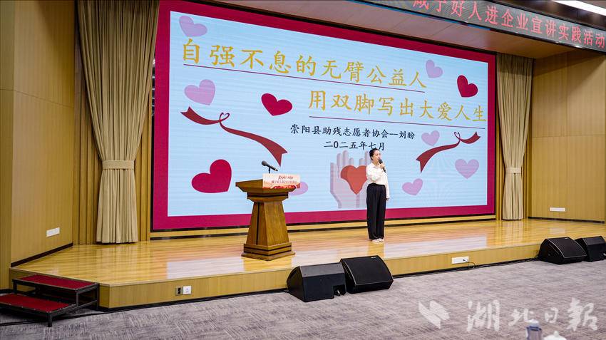 当刘细谷与女儿携手登台时,全场肃然起敬。失去双臂的他用双脚书写人生,用大爱温暖他人。女儿哽咽讲述父亲创建公益组织、帮扶3000名残疾人的故事,台下多位职工悄悄拭泪。
