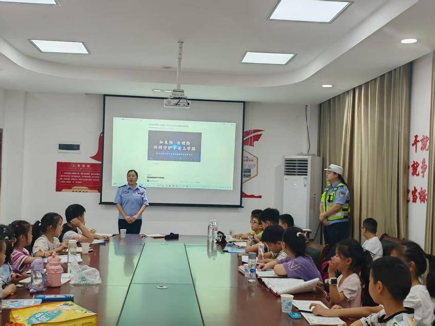 湖北日报客户端讯(通讯员沈卉平)为进一步增强青少年儿童交通安全意识,培养文明出行习惯,7月17日,孝南经济开发区七一社区联合孝感市公安局交警大队女子中队开展以“交通安全伴童行”为主题的交通安全教育活动,为暑期托管班的孩子们带来一堂生动有趣的交通安全知识课。