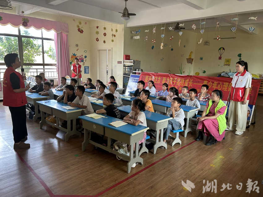 湖北日报客户端讯(通讯员魏珍、何婷)7月15日,汉川市春晖社工站心理咨询师走进城隍镇红缨幼儿园暑期爱心托管班,围绕“为什么读书”这一主题,为35名小学生开展了一场心理健康教育讲座。