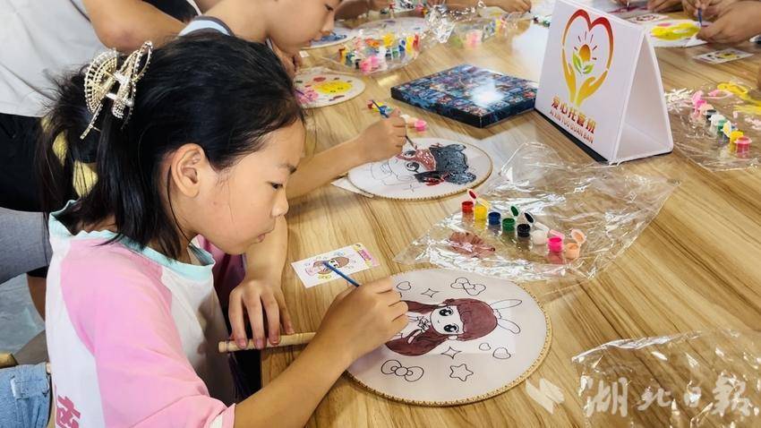 紧接着,托管班的第一堂特色课程——“五彩斑斓的夏天”手工美术课拉开帷幕。在志愿者的引导下,孩子们运用彩纸、画笔等材料,尽情发挥创意,描绘出心中绚烂的夏日图景。一件件充满童趣的手工作品,不仅让活动室焕发出别样的光彩,更点亮了孩子们对暑期生活的美好期待。