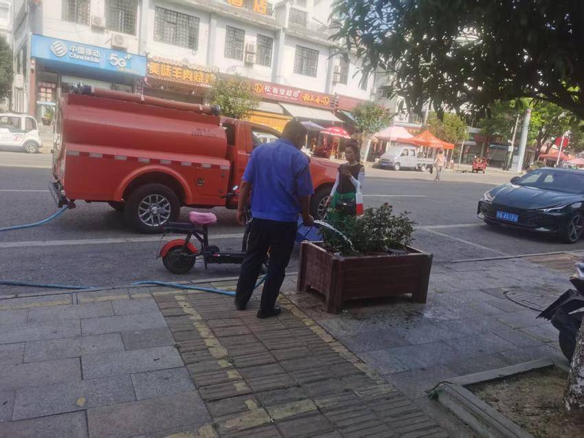 此次作业覆盖全镇主次干道及公共区域的绿化花圃,重点对绿林路行道树、回归创业园景观带、三阳村文化广场花坛等区域进行浇灌。工作人员采用“错峰作业”模式,避开正午高温时段,在清晨和傍晚进行浇灌,同时遵循“先浇新苗、再浇成株”的原则,增加近三个月新栽植的苗木浇灌频次,确保水分充分渗透根系。