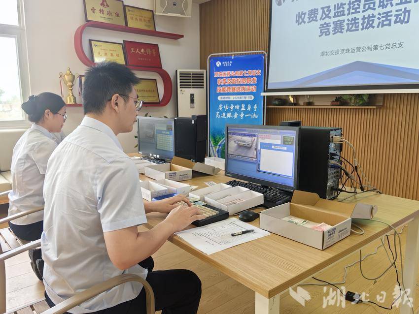 湖北日报客户端讯(通讯员胡榛)7月17日,湖北交投京珠运营公司第七党总支举办了一场紧张激烈的收费及监控业务技能竞赛选拔活动,11名来自各站所的业务骨干齐聚一堂,通过线上答题、收费实操、现场答辩三大环节展开比拼,最终将角逐出前三名代表总支参加公司竞赛!