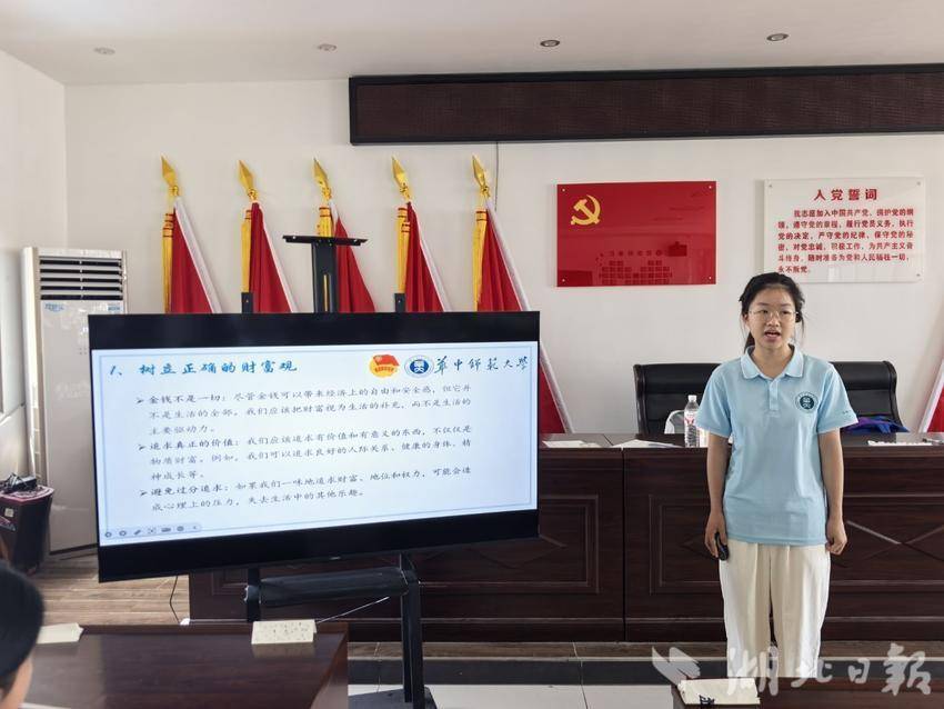 湖北日报客户端讯(通讯员 吕洁 马运虹)7月14日至17日,华中师范大学经济与工商管理学院鸿鹄志愿服务队在荆州市松滋市卸甲坪土家族乡开展了一场别开生面的财商启蒙活动。志愿者们不仅通过趣味课程帮助乡村儿童构建科学的财富观,更将反诈知识融入教学,为孩子们筑牢金融安全的“第一道防线”。