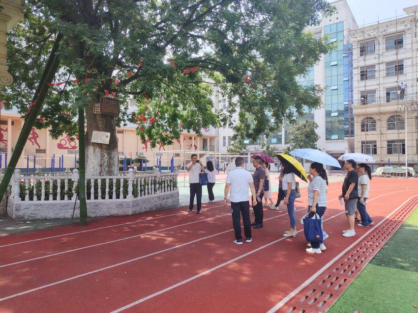 研讨结束后,后备干部们实地走访了校园。从校门口展示校训与优秀教师风采的宣传栏,到洋溢着“乐福”文化气息与廉洁党建文化的校园环境;从见证学校发展历程的校园古树,到充满活力的操场与各具特色的教学建筑;再到支撑学校稳健发展的制度建设展示,大家沉浸式地感受着校园文化独特的育人氛围。通过实地走访,后备干部们直观地理解了实验中学培育“四有好老师”、践行育人使命的实践路径,为后续的教育管理工作积累了丰富的认知。
