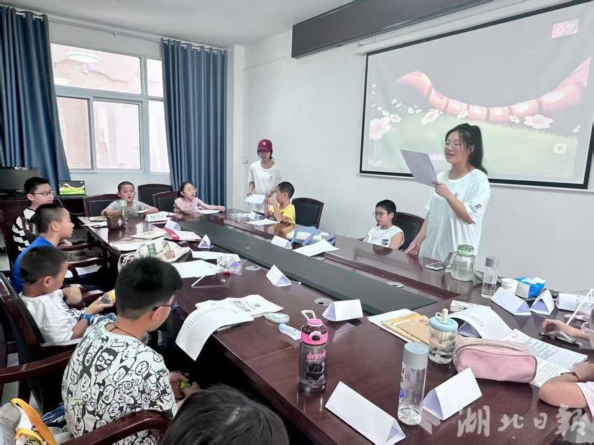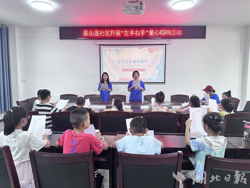 湖北日报客户端讯(通讯员 戴雨萱 张博涵 黄琴)7月18日泰山庙社区托管班里歌声飞扬,由湖北大学艺术与设计学院“艺术梦工厂-艺青童行”志愿服务队以“团结互助”为主题的“左手右手 童心唱响”音乐互动课温情开讲。孩子们用清澈的歌声传递勇气,用默契的手势诠释协作,让“携手同行”的信念在旋律中悄悄扎根。
