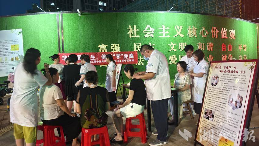 “干了一天活浑身紧绷,推拿几下舒服多了,还有三伏贴,医院想得很周到!”一位工友高兴地说道。除物资慰问外,医院发挥自身专长,为工友们送上“健康套餐”。傍晚6点至8点,一支由医院医护人员组成的义诊团队在项目部正门前准时“开诊”——为工人们免费提供血压测量、推拿理疗等服务,并特别赠送了具有“冬病夏治”功效的特色中医“三伏贴”,有效缓解了工友们因高强度劳动带来的肌肉酸痛和疲劳。