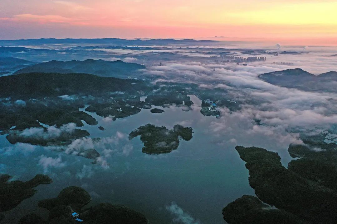 站在46.7米高的坝顶远眺,此刻的水镜湖波光粼粼,朝霞与白鹭齐飞,这一湖阔水清的景象带给我们的不仅是美的享受,更多的是振奋。在湖边漫步,似乎能听到它生态脉搏跳动的有力节奏。